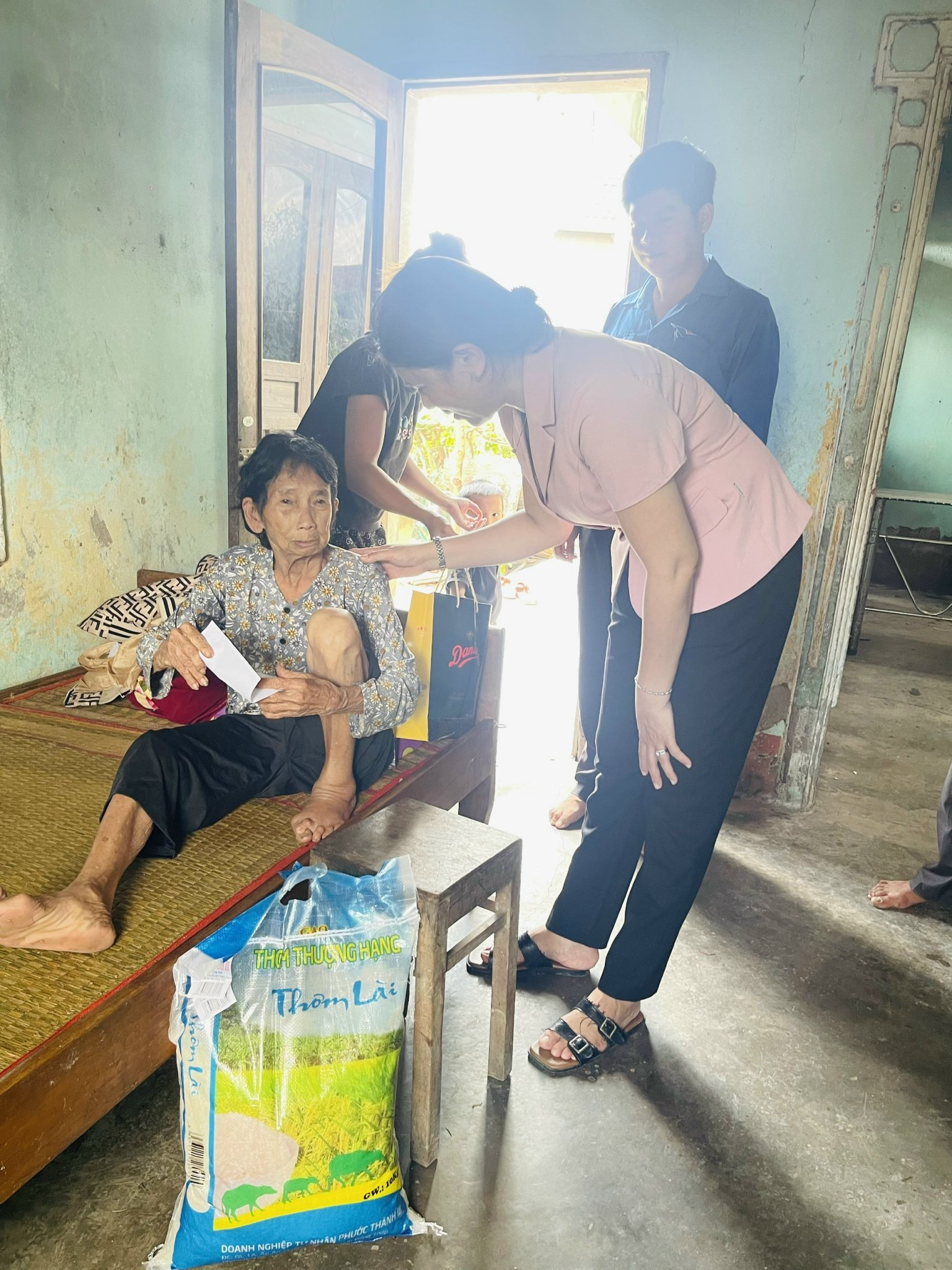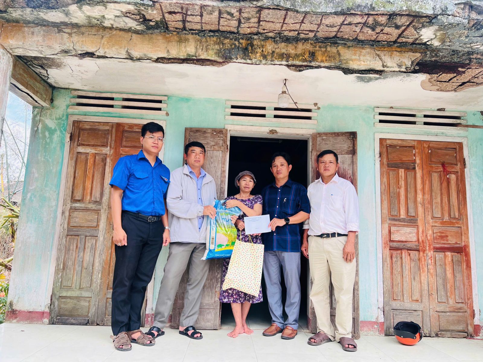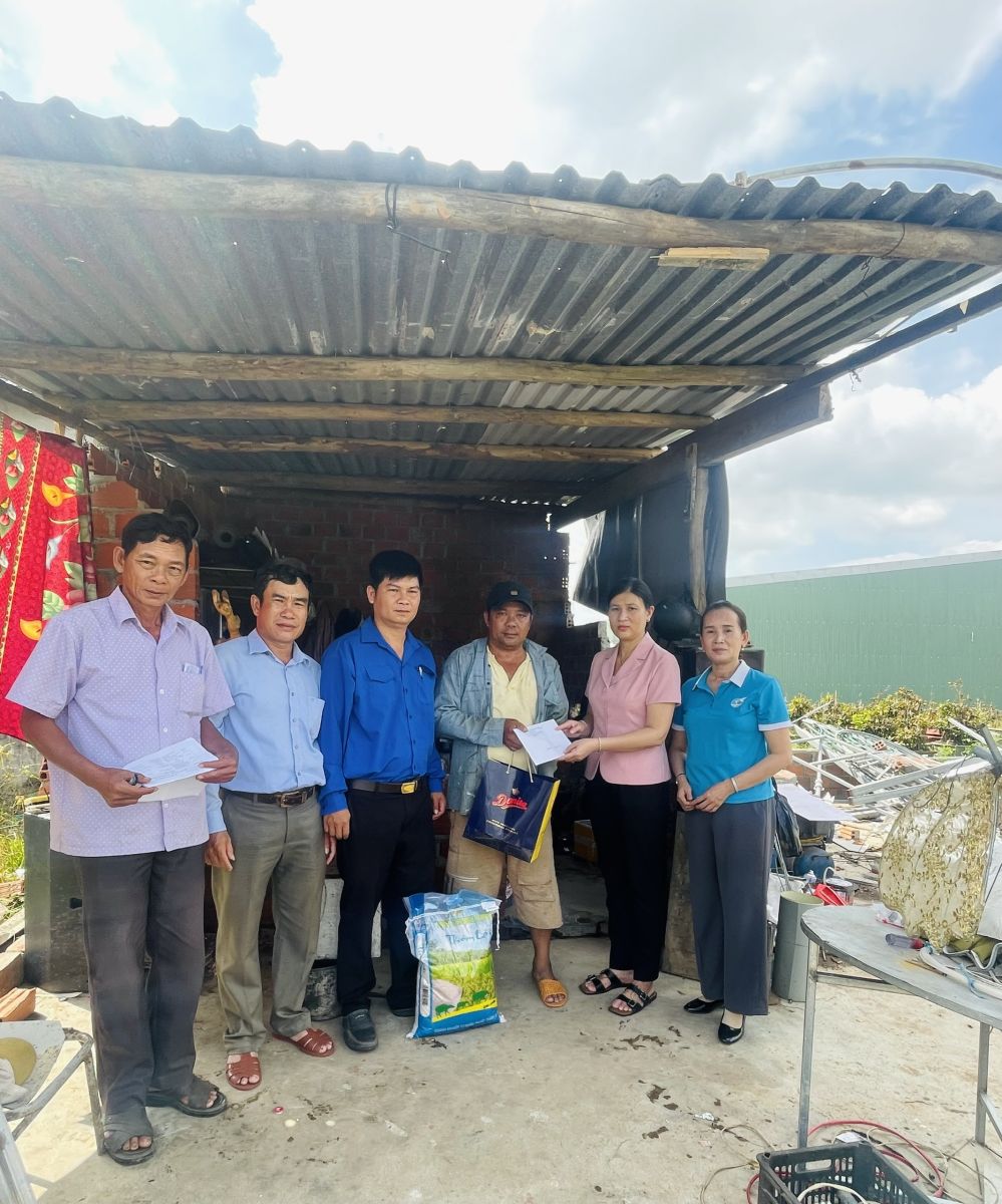 Nhân dịp này, Đoàn đã đến thăm và tặng 20 suất quà mỗi suất trị giá 500.000đ gồm 200.000đ tiền mặt và các nhu yếu phẩm cần thiết cho 20 hộ dân trên địa bàn xã có hoàn cảnh đặc biệt khó khăn (hộ neo đơn, người bị khuyết tật, hộ nghèo…) bị nhà sập, tốc mái, thiệt hại do bão số 13 kalmaegi gây ra. Số quà trên tuy không nhiều nhưng có ý nghĩa thiết thực, góp phần giúp người dân vượt qua khó khăn trước mắt, đảm bảo sức khỏe để tiếp tục khắc phục khó khăn, ổn định cuộc sống.