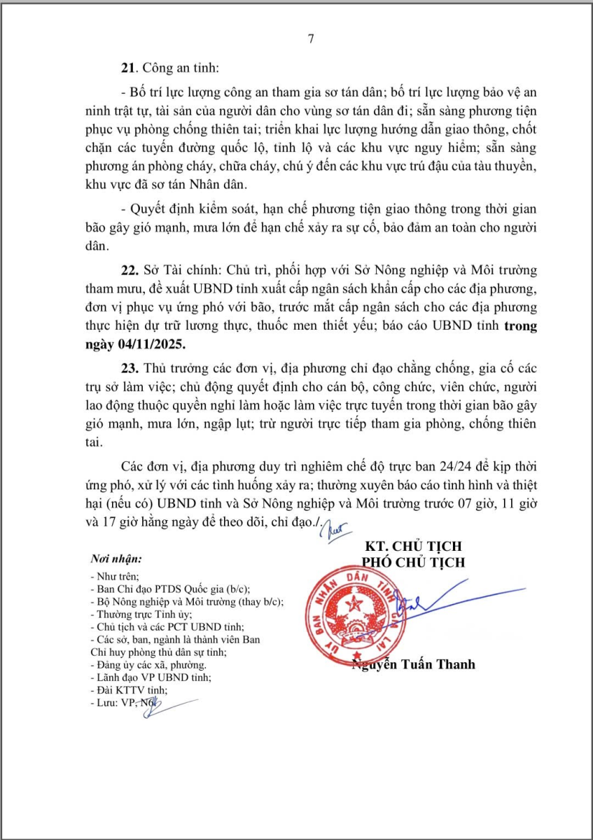Công điện số 09/CĐ-UBND, ngày 06/11/2025 của Chủ tịch UBND tỉnh Gia Lai, về việc triển khai các biện pháp khẩn cấp ứng phó với bão số 13