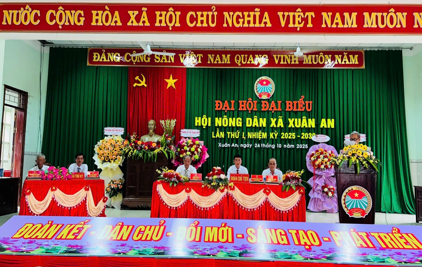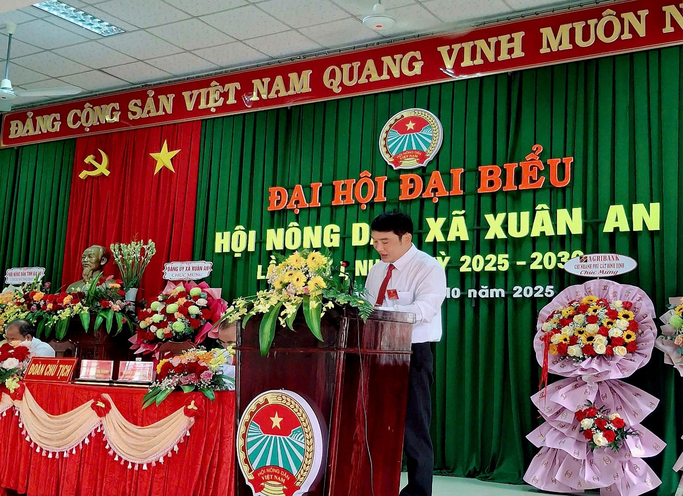 Tại Đại hội, được sự ủy quyền của BTV Hội Nông dân tỉnh, thay mặt Đoàn Chủ tịch đồng chí Nguyễn Đăng Thành, Chủ Tịch Hội Nông dân xã, đã thông qua các Quyết định của Ban Thường vụ Hội Nông tỉnh Gia Lai: Quyết định Chỉ định tham gia Ban Chấp hành Hội Nông dân xã Xuân An, khóa I nhiệm kỳ 2025-2030 gồm 25 đồng chí; Quyết định Chỉ định tham gia Ban Thường vụ Hội Nông dân xã Xuân An, khóa I nhiệm kỳ 2025-2030 gồm 7 đồng chí; Quyết định Chỉ định chức danh Chủ tịch, Phó Chủ tịch Hội Nông dân xã Xuân An khóa I, nhiệm kỳ 2025-2030: Đồng chí Nguyễn Đăng Thành, giữ chức vụ Chủ tịch Hội Nông dân xã; đồng chí Nguyễn Đức Hoàng và đồng chí Trần Văn A, giữ chức vụ Phó Chủ tịch Hội Nông dân xã khóa I, nhiệm kỳ 2025-2030; Quyết định Chỉ định Đoàn đại biểu Hội Nông dân xã Xuân An tham dự Đại hội đại biểu Hội Nông dân tỉnh Gia Lai lần thứ I, nhiệm kỳ 2025-2030 : 03 đại biểu chính thức và 01 đại biểu dự khuyết.