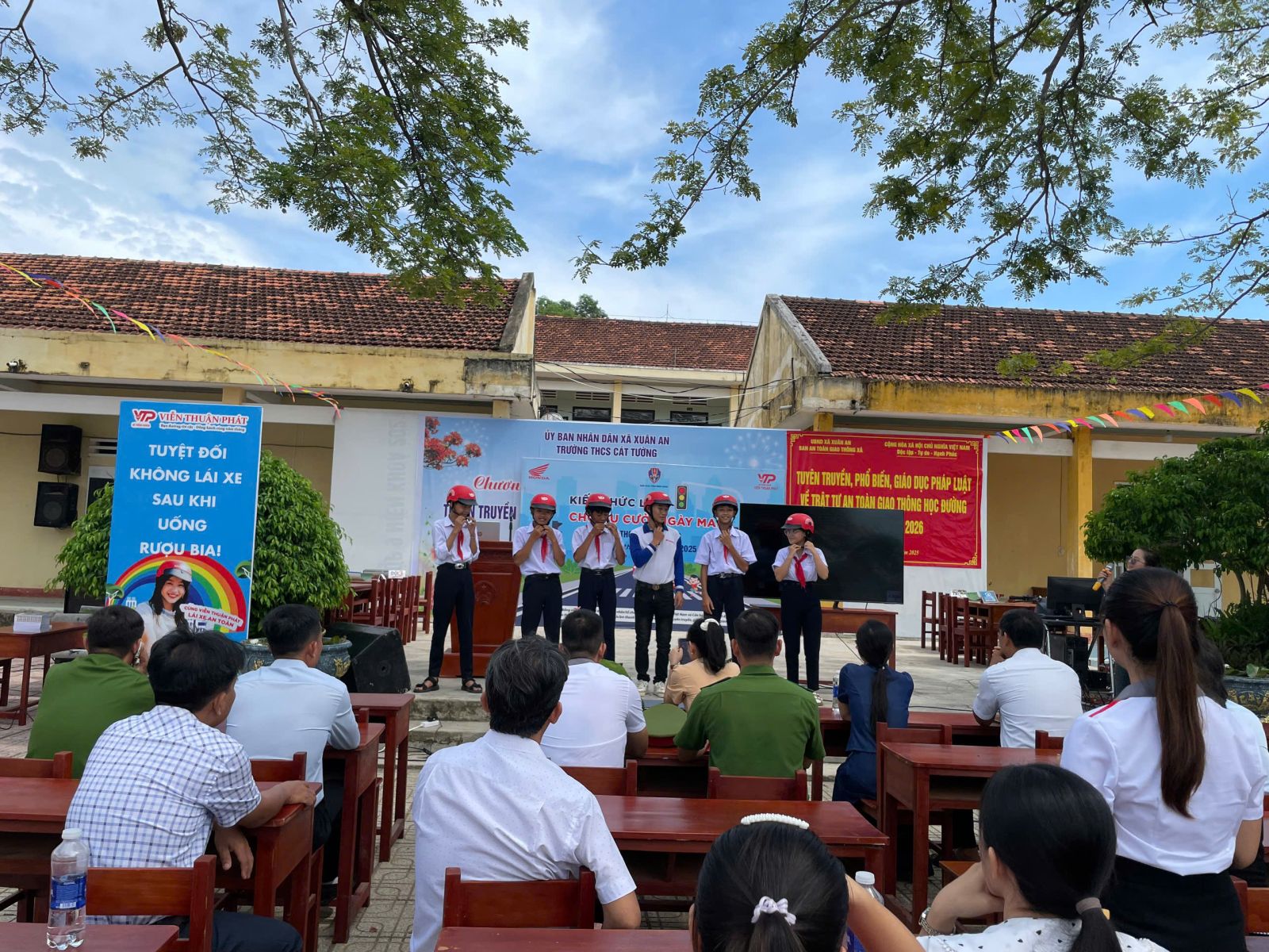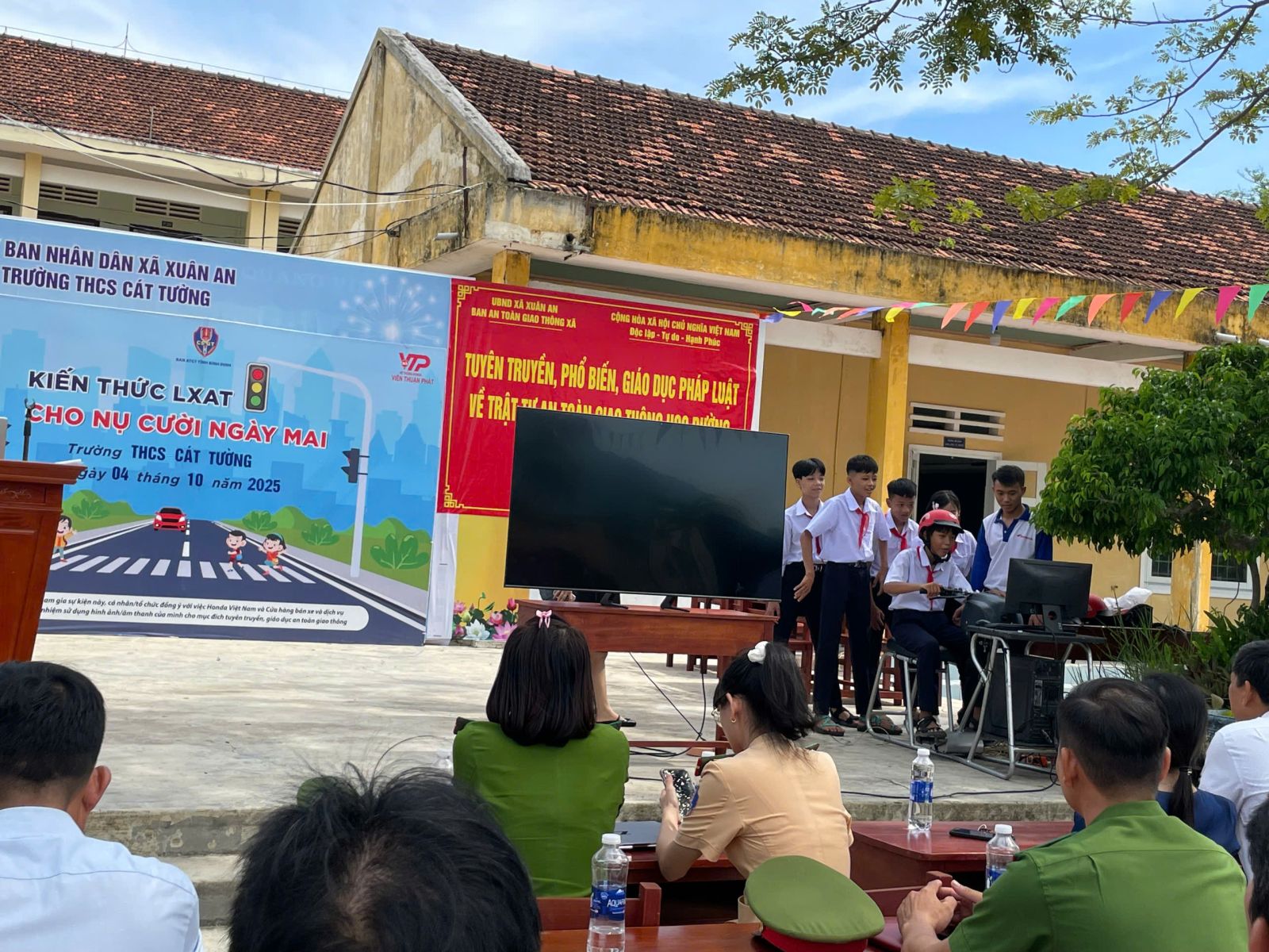 Vừa qua, Công an tỉnh Gia Lai - TTYT Phù Cát – Công ty Viễn Thuận Phát chi nhánh Phù Cát phối hợp UBND xã, Công An xã Xuân An tổ chức buổi ngoại khóa tại Trường THCS Cát Tường tuyên truyền pháp luật về an toàn giao thông học đường, sức khoẻ sinh sản vị thành niên đến giáo viên và 984 học sinh nhà trường.