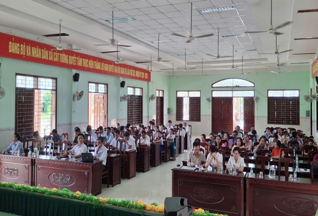 Sau báo cáo, đại diện Trường THCS Cát Tường đã tham luận về "Công tác tham gia giáo viên dạy giỏi cấp tỉnh”; Trường Mẫu Giáo Cát Tường tham luận về “Kinh nghiệm trong công tác xây dựng Trường đạt chuẩn quốc gia”.