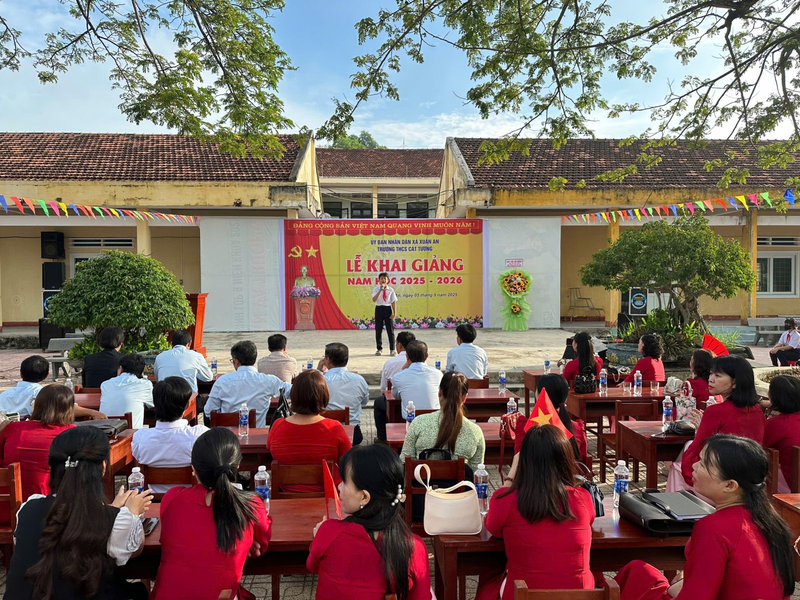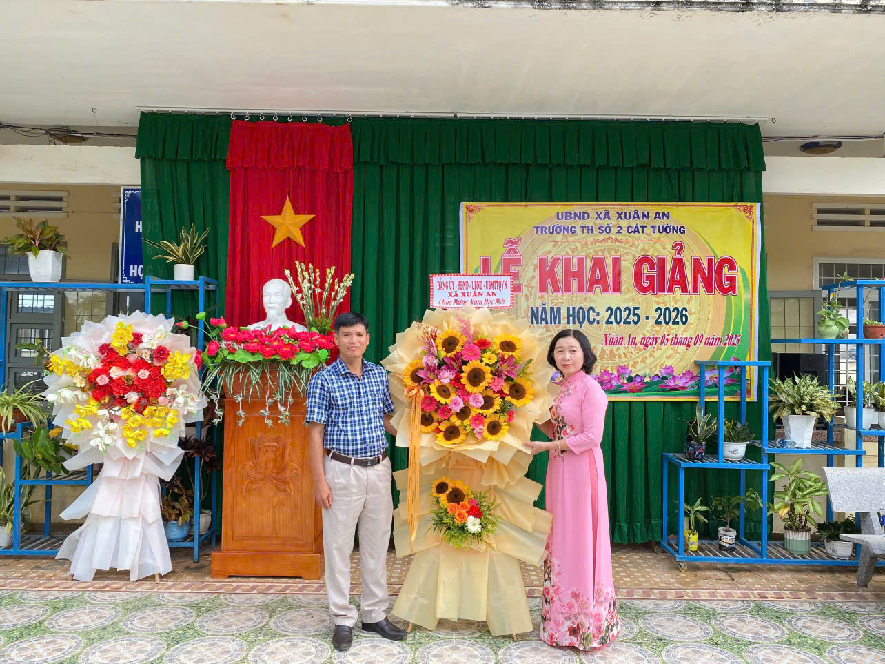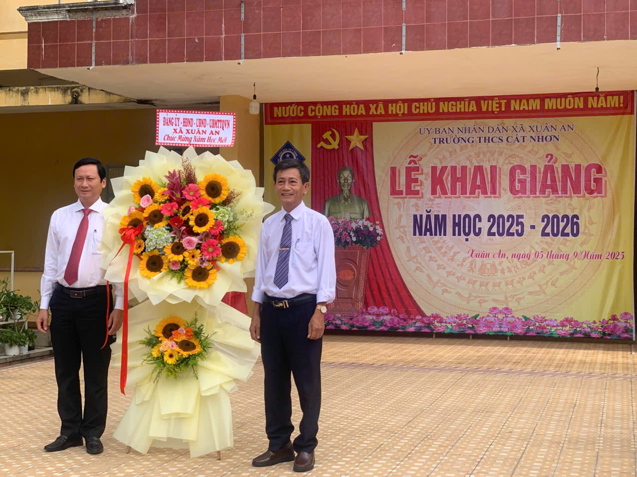 Tại trường THCS Cát Nhơn, đồng chí Đỗ Xuân Thắng – Bí thư Đảng ủy, Chủ tịch HĐND xã Xuân An đã đến dự lễ khai giảng, tặng hoa chúc mừng thầy và trò nhà trường một năm học mới đạt nhiều thành tích cao.